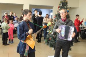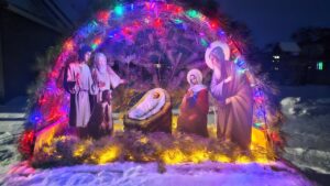 Рождественский вертеп украшает вход в Благовещенский храм – не первый год сооружает такую композицию прихожанин церкви, мастер на все руки Николай Хвостов